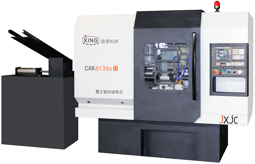 雙主軸兩端自動(dòng)加工數(shù)控車(chē)床特別適宜加工各種形狀復(fù)雜的軸類零件,一次裝夾能夠完成車(chē)、鉆、攻等工序加工,提高了工序復(fù)合的程度,降低了設(shè)備投入,既保證了零件的加工精度,又減少了工序的周轉(zhuǎn)等輔助時(shí)間,并大幅降低對(duì)操作者技能的要求,減輕工人的勞動(dòng)強(qiáng)度。雙主軸自動(dòng)加工單元尤其適合多品種、中小批量的輪番加工,工藝適應(yīng)性強(qiáng),加工效率高,廢品率低,產(chǎn)品加工一致性好,可降低對(duì)工人技術(shù)熟練程度的要求。